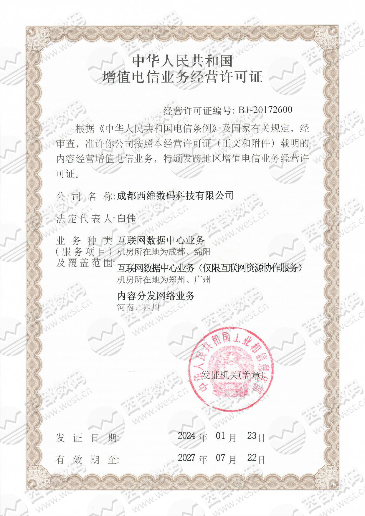 • 增值電信業(yè)務(wù)經(jīng)營許可證(1)