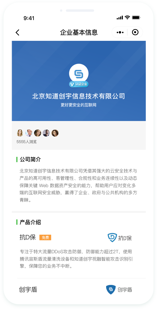 企業(yè)認(rèn)證通過(guò)后,您的網(wǎng)址將被QQ收錄,可以將您的網(wǎng)站快速在9億QQ用戶中傳播擴(kuò)散,幫助您維護(hù)企業(yè)形象。
