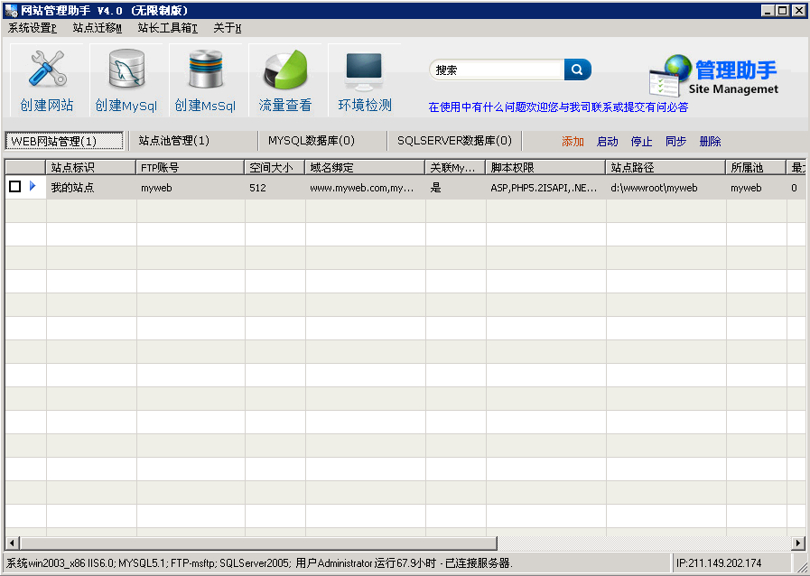 最后點(diǎn)“確認(rèn)創(chuàng)建”就新建完一個(gè)站點(diǎn)了。 提示框提示“MYSQL創(chuàng)建結(jié)果:Ture”表示mysql創(chuàng)建成功,若mysql創(chuàng)建失敗,請(qǐng)檢查mysql服務(wù)是否正常啟動(dòng)或系統(tǒng) 設(shè)置中mysql的路徑是否正確。