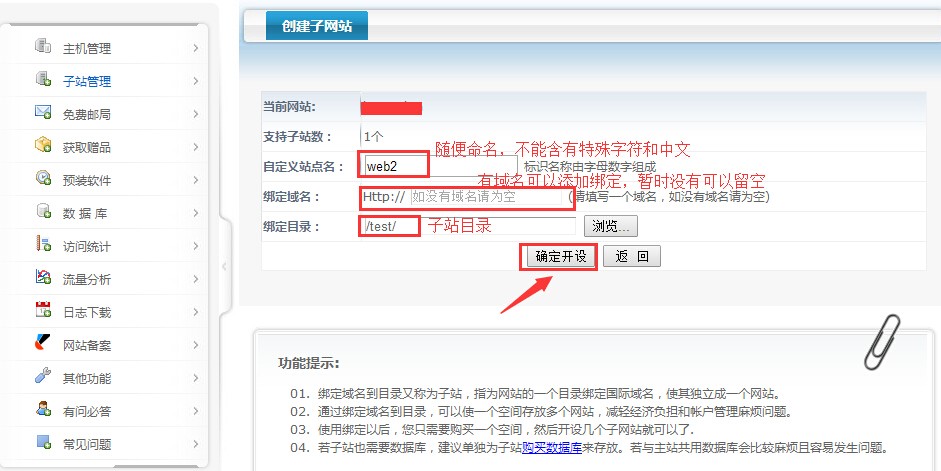 填寫好子站信息,確認(rèn)開設(shè)即可。