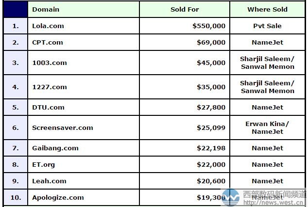 巨頭破產(chǎn)域名lola.com拍出374萬元高價!連“丐幫”都來了!三五互聯(lián)(35.com)6月8日消息,本期的DN交易榜(5.22-6.4)上,短域名占據(jù)了絕大多數(shù)席位,其中賣價最貴的域名是lola.com,成交價為550,000美元,約合人民幣374萬元。