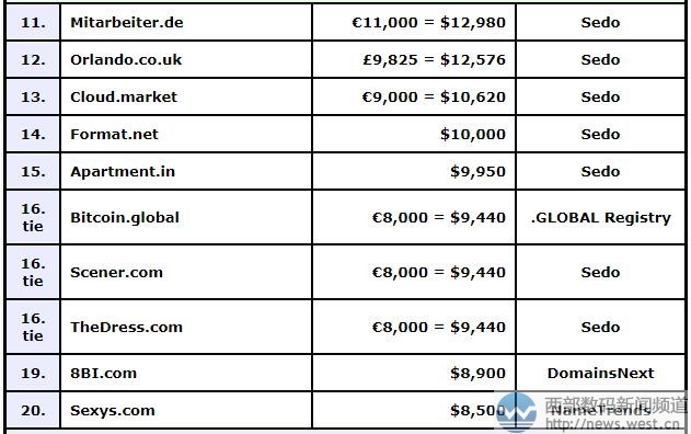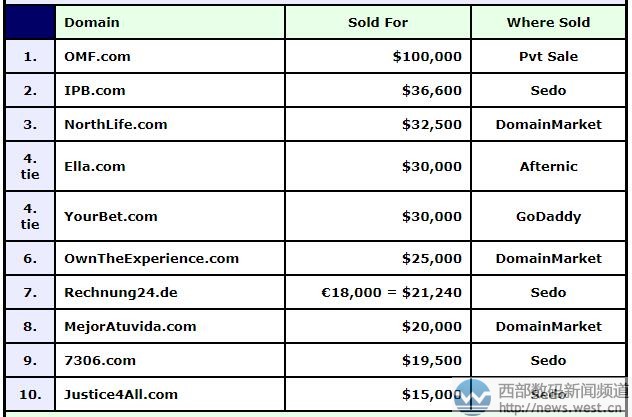 金融終端66萬元收購域名OMF.COM!“比特幣”“云市場”均登DN榜三五互聯(lián)(35.com)8月17日消息,本期 DN交易榜(8.14-8.20)上,三字母域名OMF.COM以100,000美元奪得第一,約合人民幣66萬元。