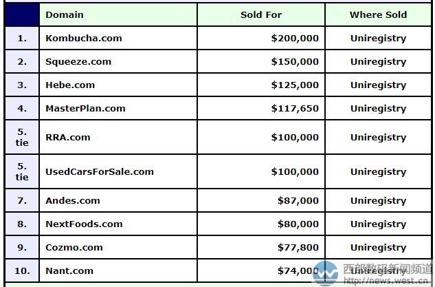 DN榜:印尼“康普茶”竟賣出132萬(wàn)元! 多個(gè)英文域名六位數(shù)美金成交!三五互聯(lián)(35.com)9月21日消息,最新一期的DN榜(9.11-9.17)被Uniregistry平臺(tái)此前交易但未公布價(jià)格的域名占據(jù)。其中,賣價(jià)最高的是一枚印尼語(yǔ)域名kombucha.com,成交價(jià)為200,000美元,約合人民幣132萬(wàn)元。
