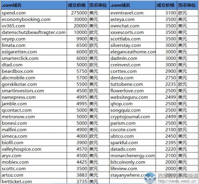 領(lǐng)跑sedo榜!英文域名spend.com拍出182萬(wàn)元!三五互聯(lián)(35.com)11月29日消息,據(jù)外媒消息,最新一期的sedo交易榜剛剛出爐。本期共有78個(gè)域名超2000美元成交,其中冠軍由雙拼域名spend.com以275,000美元摘得,約合人民幣182萬(wàn)元。
