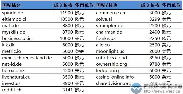 國(guó)別域名方面,德國(guó)國(guó)家域名繼續(xù)領(lǐng)銜,本期排在第一的是spinde.de,成交價(jià)為11,900歐元,對(duì)應(yīng)有一款名為Spin.de的手機(jī)軟件。Matt.de(表面暗淡的)、myskills.de(我的技能)等德國(guó)域名也分別拍除8800歐元、8700歐元。 除此以外,智利域名eltiempo.cl拍了1.05萬(wàn)歐元,相關(guān)域名eltiempo.com/.es都被啟用了。印度域名business.co.in拍了1萬(wàn)美元。 本文轉(zhuǎn)載自新聞資訊,原文鏈接:領(lǐng)跑sedo榜!英文域名spend.com拍出182萬(wàn)元!