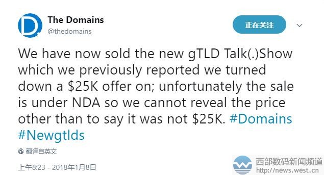 據(jù)知名投資人Michael Berkens此前在推特上曝料稱,在拒絕了25,000美元的報(bào)價(jià)之后,新頂級(jí)域名talk.show近日完成交易。但尚不能對(duì)外公布交易價(jià)格。
