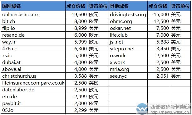 除此以外,.com域名方面成交價(jià)在五位數(shù)美元以上的還有netregie.com(潛在終端有IT公司Netregie)、softotpay.com(軟支付)、daten.com、blocktags.com(塊標(biāo)記符)。