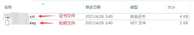 4.解壓后會得到兩個文件,.crt的是證書文件,.key的是私鑰文件。
