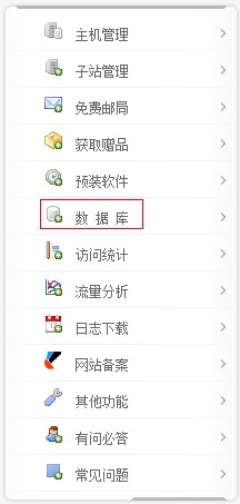 從虛擬主機(jī)遷移數(shù)據(jù)至VPS/云主機(jī)/獨(dú)立服務(wù)器的方法備份流程: 以下遷移流程需要您有一定的網(wǎng)站管理基礎(chǔ),若對以下轉(zhuǎn)移流程不熟悉,可以提交維護(hù)工單,由我司收費(fèi)為您處理。 一、備份 1、備份mysql數(shù)據(jù)庫 登錄我司網(wǎng)站,點(diǎn)擊“業(yè)務(wù)管理”——“虛擬主機(jī)管理”——“管理”,進(jìn)入虛擬主機(jī)管理面板,點(diǎn)擊左側(cè)的數(shù)據(jù)庫,如圖: