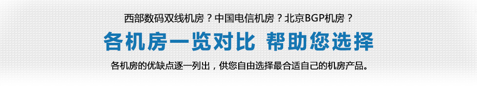 | 如果仍把握不準(zhǔn),不知道如何選擇哪個機房,請將您的需求信息(所在地區(qū)、上網(wǎng)方式、網(wǎng)站簡要情況)發(fā)給在線客服,我們將為您人工推薦合適的機房! | |||||